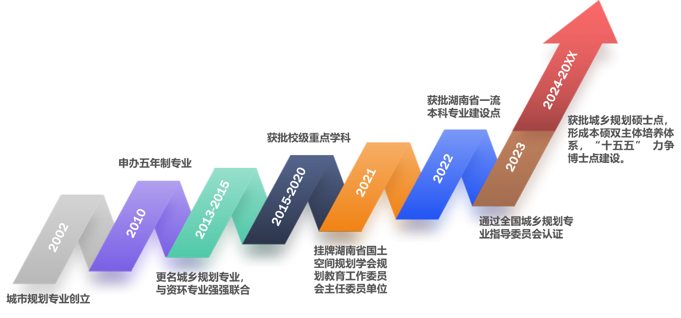 (1)秉持"立足湖湘、在地育人、创新实践"的育人理念,深度融入湖湘文化特色,聚焦美丽中国建设与“三高四新”美好蓝图,致力于培养兼具家国情怀与专业素养的新时代空间规划人才。