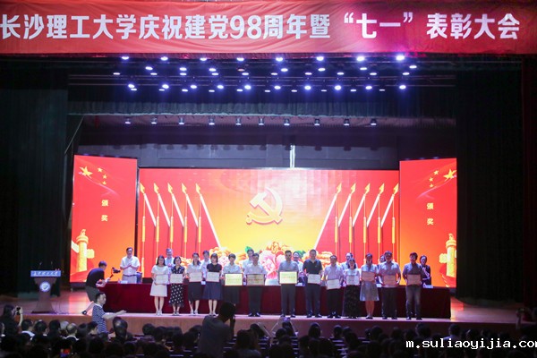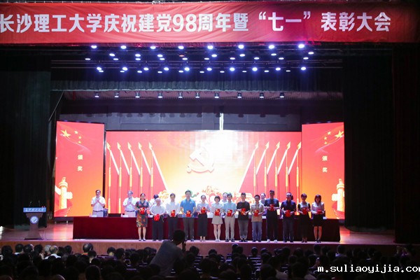 校领导为受表彰的集体和个人颁奖。汽车与机械工程学院党委被省委教育工委评为2018全省高校党建工作标杆院系,土木工程学院力学系党支部、化学与食品工程学院食品本科生党支部被评为2018年全省高校党建工作样板党支部。4名老师获评2018年全省高校教师党支部书记“双带头人”标兵、4人被评为2018年全省高校党务工作示范岗、2人被评为2018全省高校青年教工党员示范岗、4人被评为湖南省普通高校百佳大学生党员。4个先进党委(党总支)、54个先进党支部、34名优秀党支部书记、41名优秀党务工作者、9名优秀共产党员标兵、60名优秀共产党员受到学校党委的表彰。